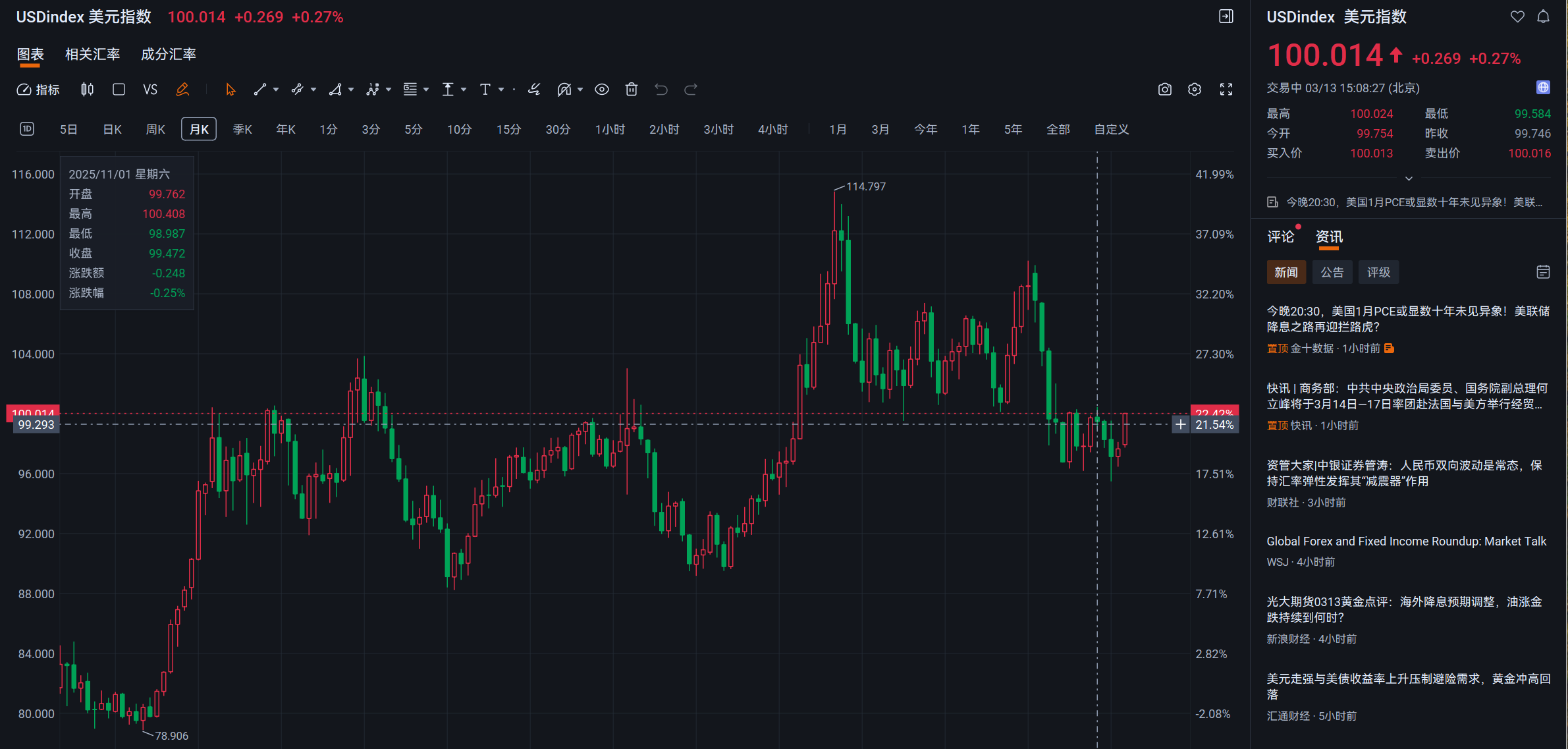 美元指数站上100点