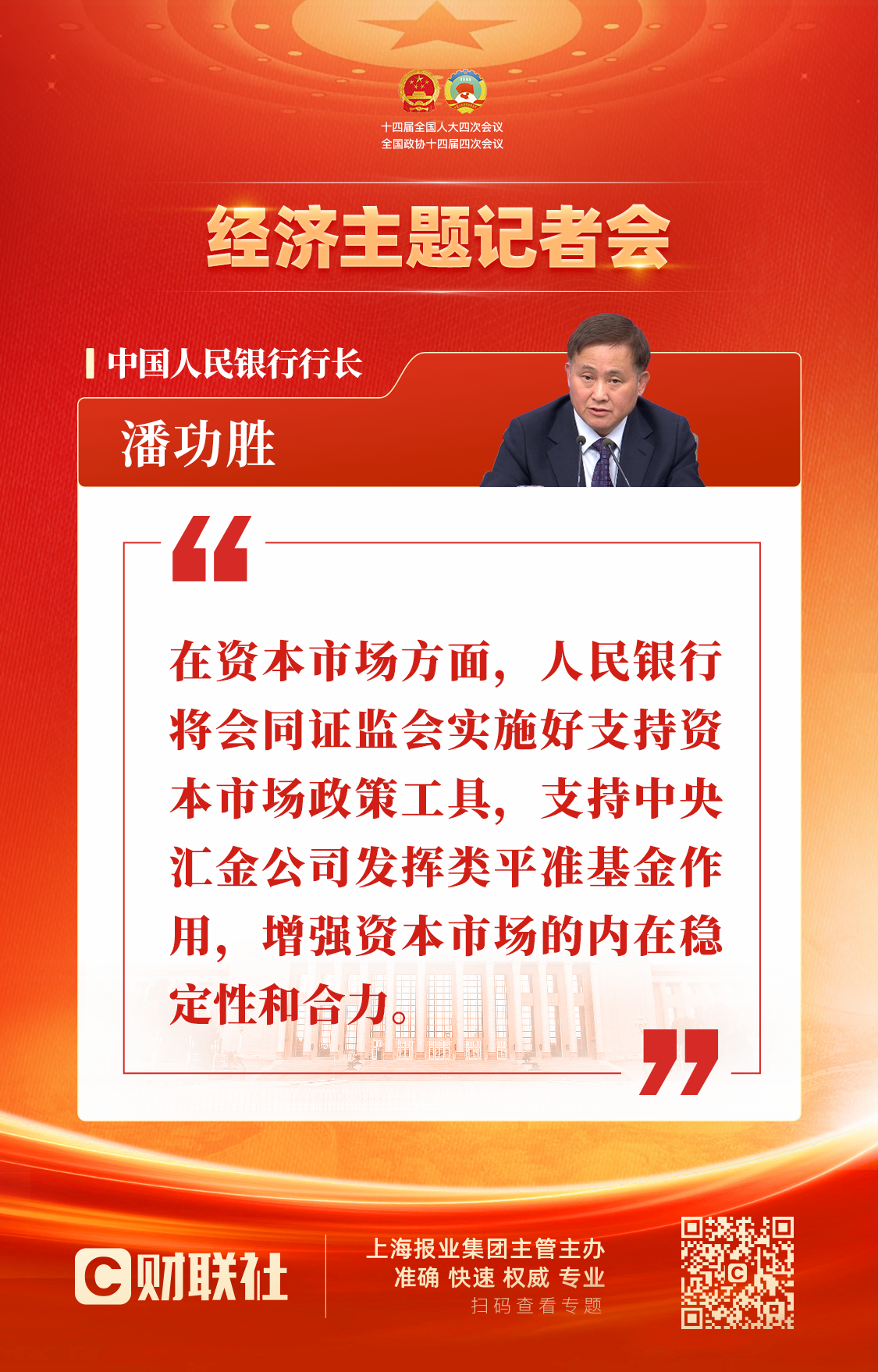 潘功胜:实施好支持资本市场政策工具 支持中央汇金公司发挥类平准基金作用
