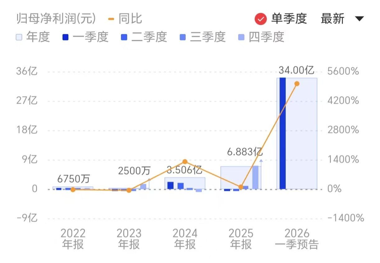 财联社3月31日电,财联社3月31电,德明利(001309.SZ)公告称,预计2026年第一季度归属于上市公司股东的净利润为31.5亿元–36.5亿元,上年同期亏损6908.77万元。报告期内,在供应偏紧的背景下,行业景气度持续上行,存储价格持续上涨,公司依托前期充足的原材料战略储备,盈利能力持续改善,利润水平大幅提高。小财注:德明利2025年Q4净利润7.15亿,据此计算,2026年Q1净利预计环比增长341%-410%。