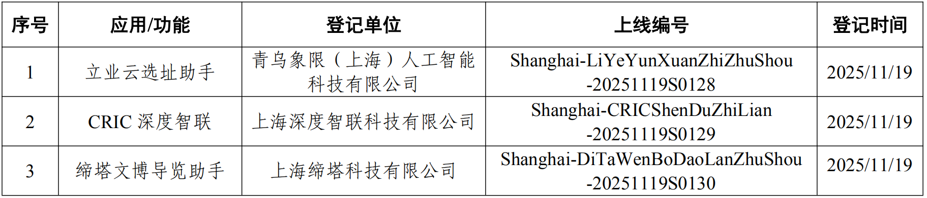 财联社11月19日电,据“网信上海”,截至11月19日,上海市新增3款已完成登记的生成式人工智能服务,累计已完成130款生成式人工智能服务登记。