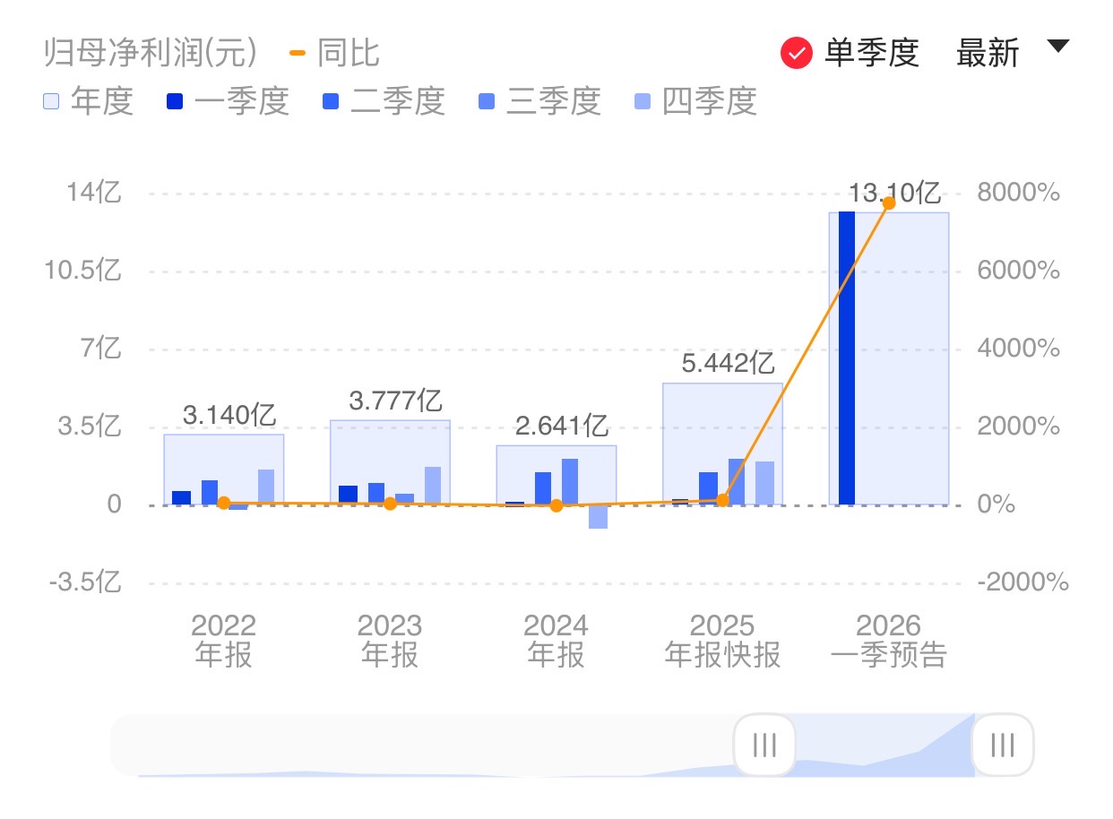 财联社4月7日电,香农芯创(300475.SZ)公告称,预计2026年第一季度归属于上市公司股东的净利润为11.4亿元-14.8亿元,比上年同期增长6,714.72%-8,747.18%。在生成式人工智能(AGI)应用需求蓬勃增长的强劲驱动下,行业景气度持续上行,企业级存储产品价格持续上涨,公司盈利能力持续改善,利润水平大幅提高。小财注:香农芯创2025年Q4净利1.85亿元,据此计算,2026年Q1净利预计环比增长517.22%-701.30%。