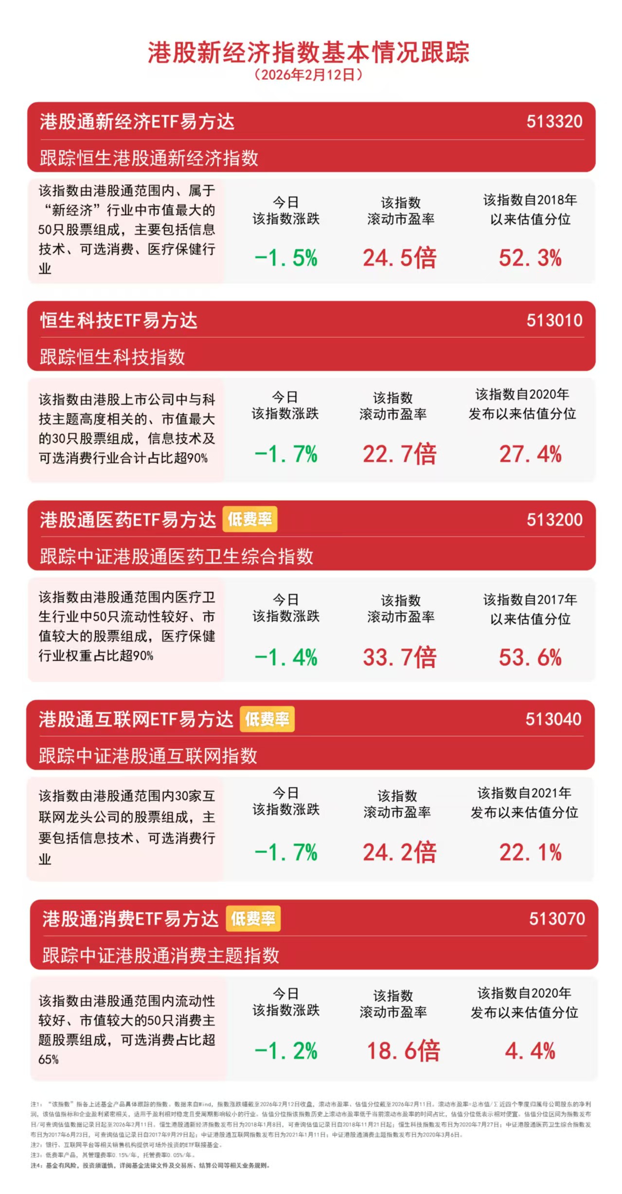中证港股通消费主题指数覆盖酒旅、餐饮等传统服务业龙头,更包含潮玩、金饰等高弹性资产,以及运动服饰、白电等高股息标的。截至2月11日,指数滚动市盈率为18.6倍,位于2020年发布以来3.9%分位处。中国银河证券指出,消费板块当前估值处于相对低位,临近春节,促消费政策增多,消费活力逐渐提升,消费板块有望上涨。