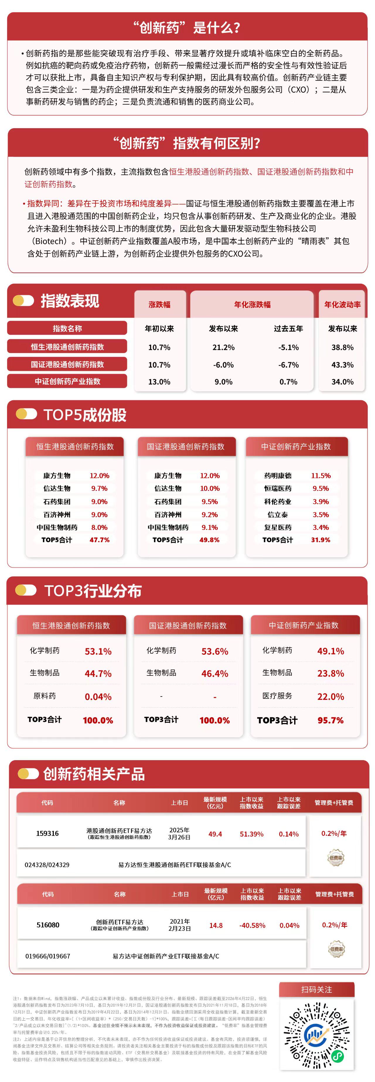 4月23日,创新药赛道表现承压,截至收盘,恒生港股通创新药指数下跌4.9%,中证创新药产业指数下跌1.1%,资金逆势布局,港股通创新药ETF易方达(159316,联接基金A/C:024328/024329)全天净申购达4500万份。