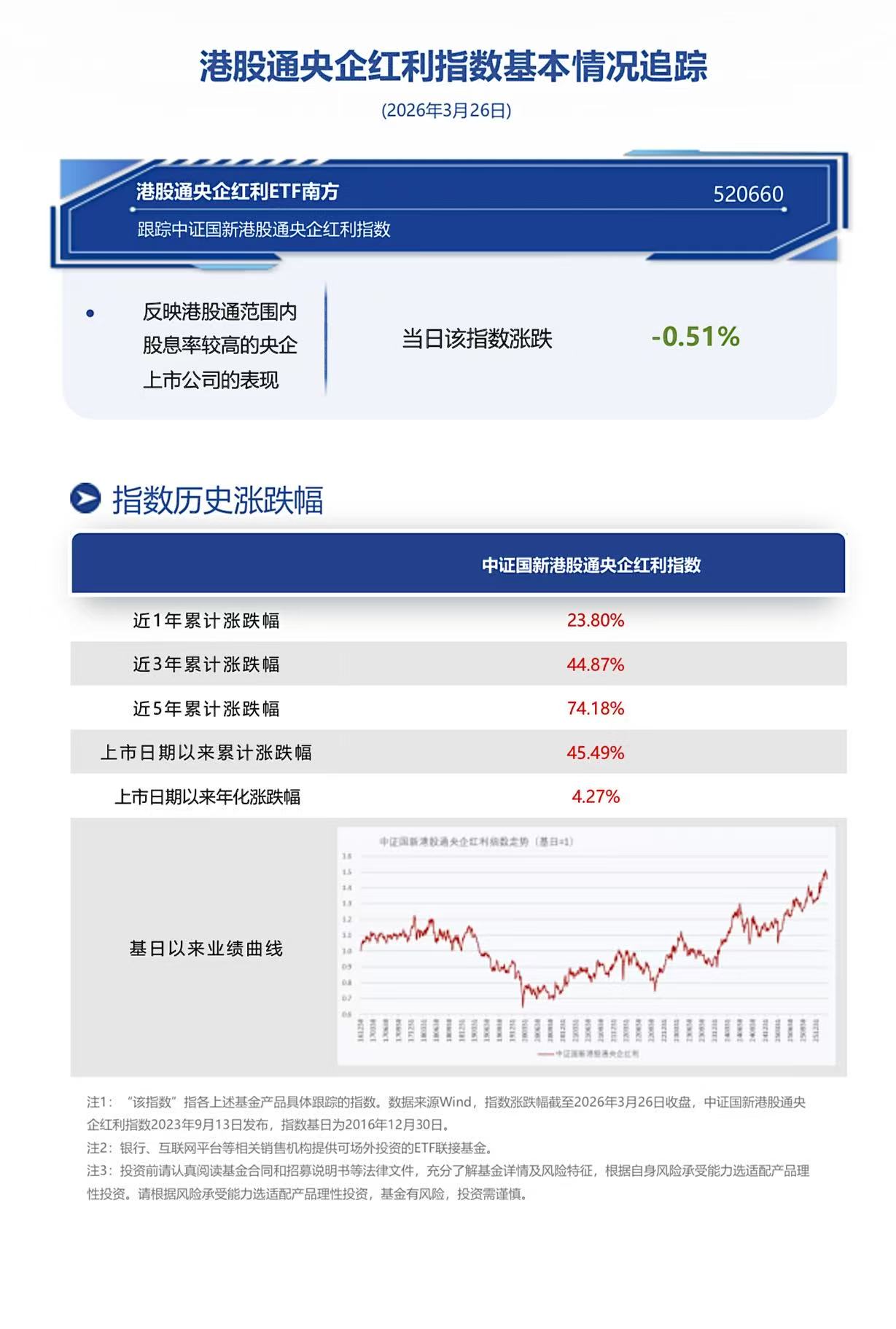 截至2026年3月26日收盘,港股通央企红利ETF南方(520660)换手6.82%,成交1.85亿元,跟踪指数港股通央企红利(931722)跌0.51%。