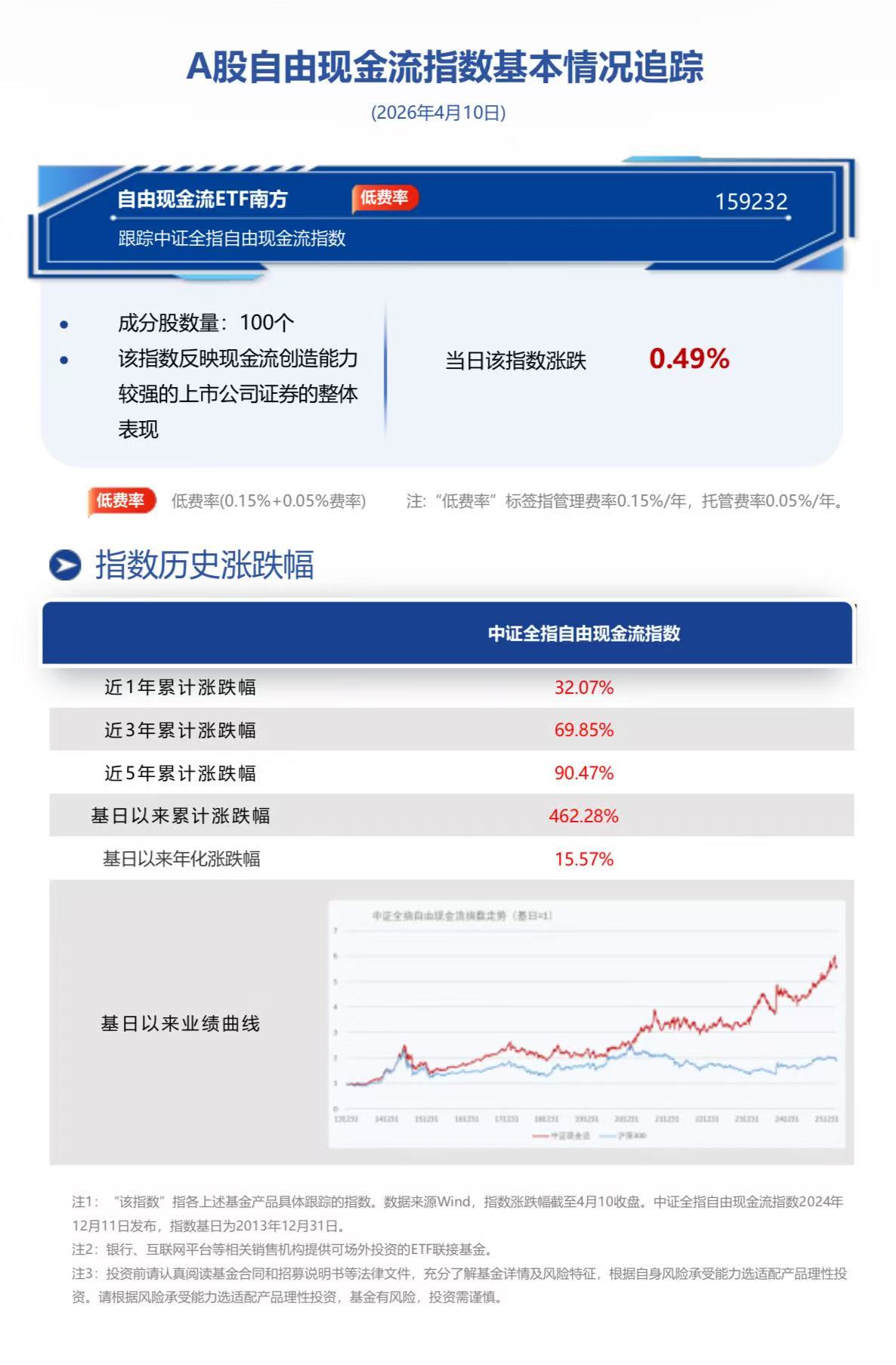 截至2026年4月10日收盘,自由现金流ETF南方(159232)换手4.04%,成交1.70亿元,跟踪标的指数中证全指自由现金流指数(932365.CSI)涨0.49%。