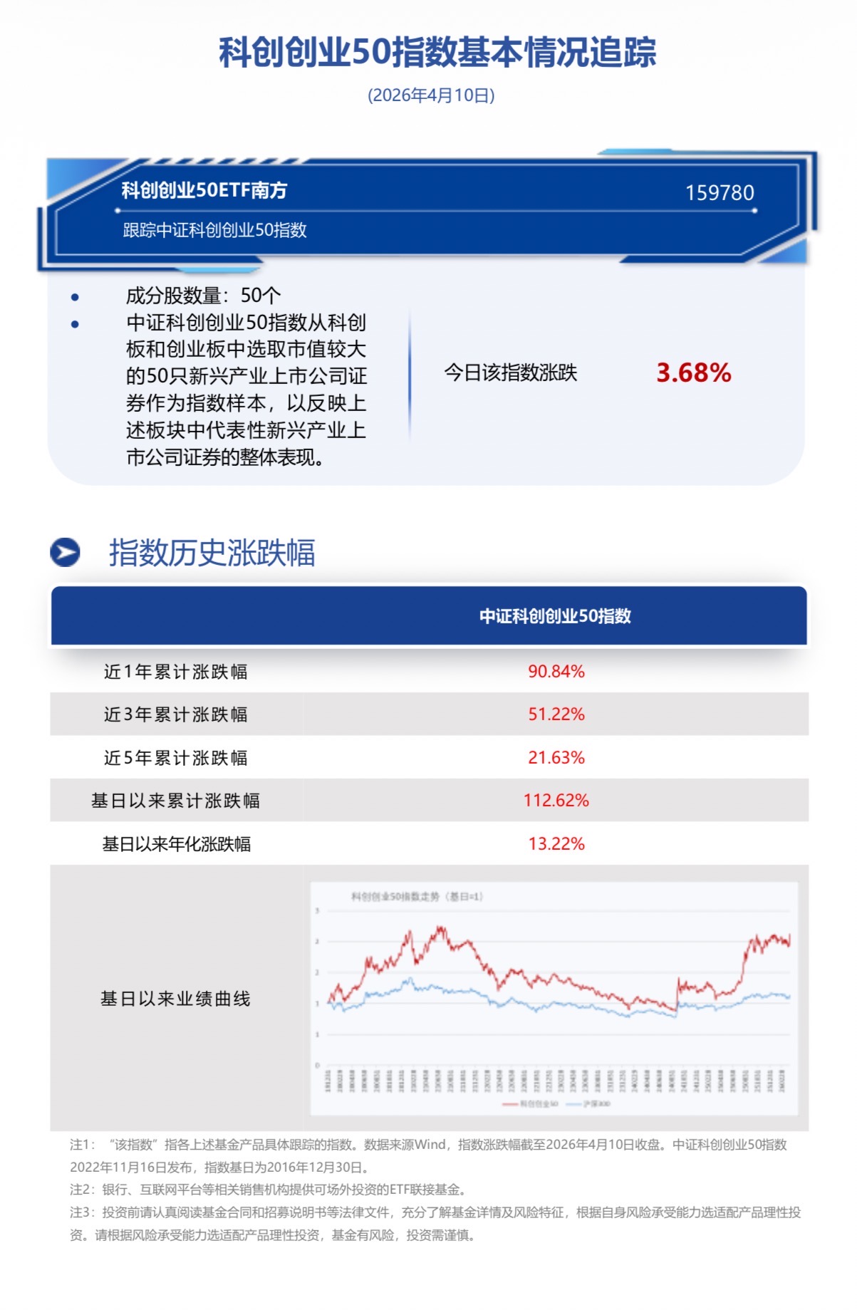截至2026年4月10日收盘,科创创业50ETF南方(159780)换手5.92%,成交1.83亿元,跟踪标的指数中证科创创业50指数(931643) 大涨3.68%。