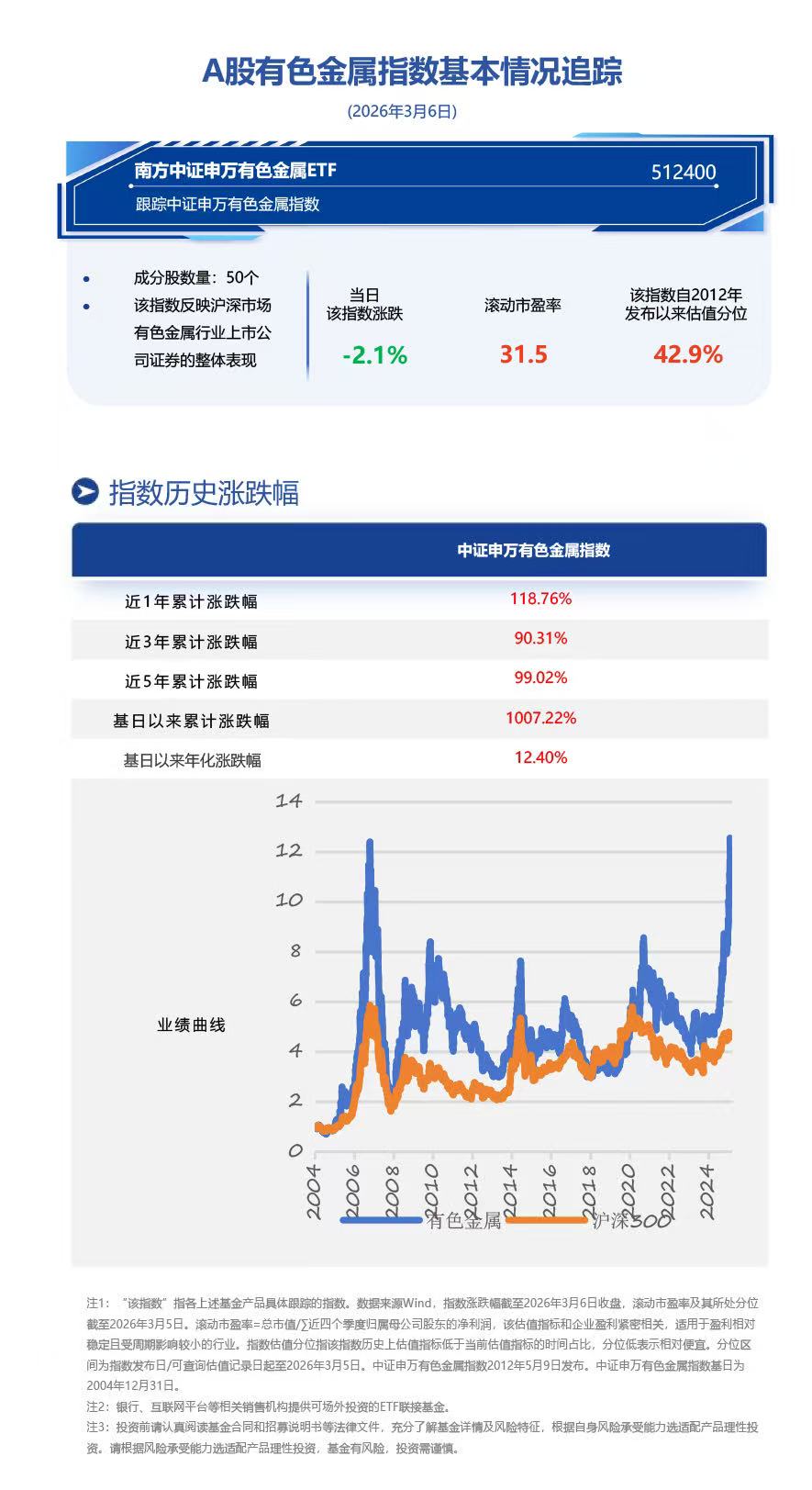 有色金属ETF(512400),场外联接(A类:004432;C类:004433)。