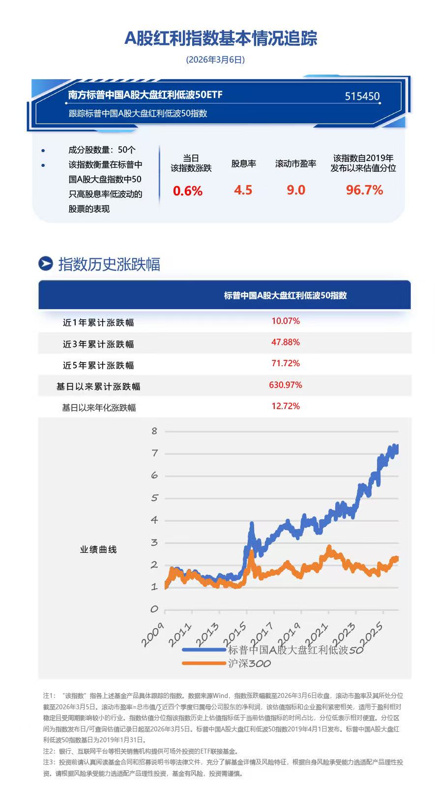 红利低波50ETF(515450)紧密跟踪标普中国A股大盘红利低波50指数,标普中国A股大盘红利低波50指数衡量在中国A股市场中50檔最不具波动性高股息率大盘的表现。