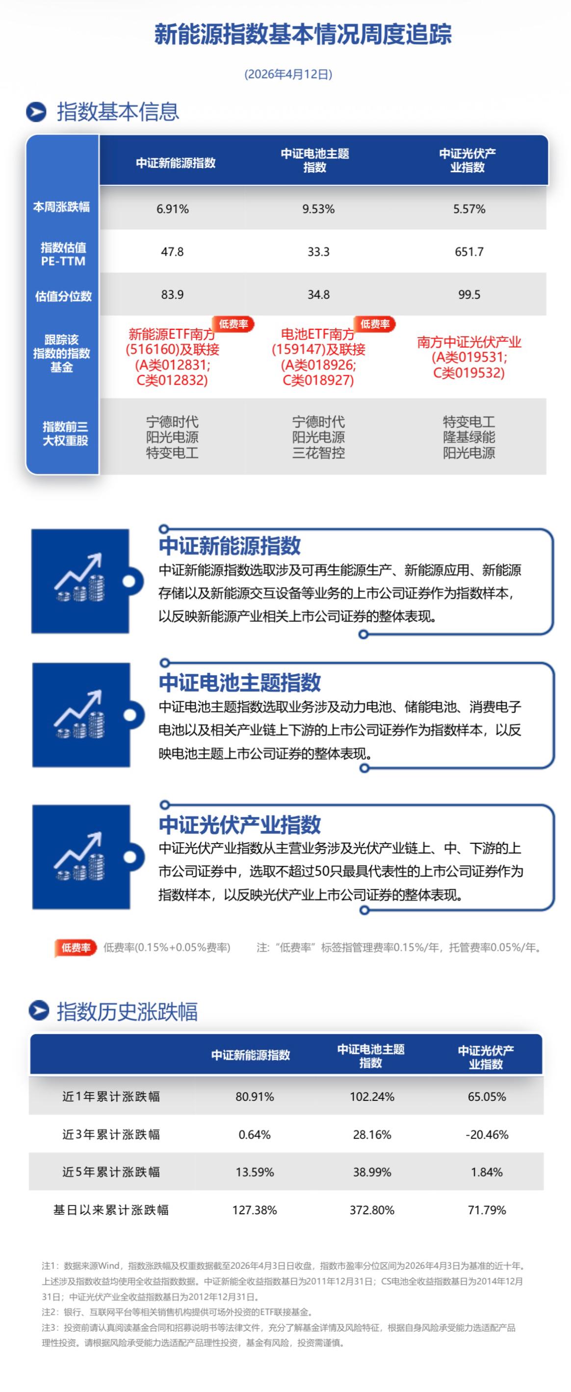 截至本周五收盘,新能源ETF南方(516160)跟踪标的中证新能源指数本周涨6.91%;电池ETF南方(159147)跟踪标的中证电池主题指数本周涨9.53%;南方中证光伏产业(019531)跟踪标的中证光伏产业指数本周涨5.57%。