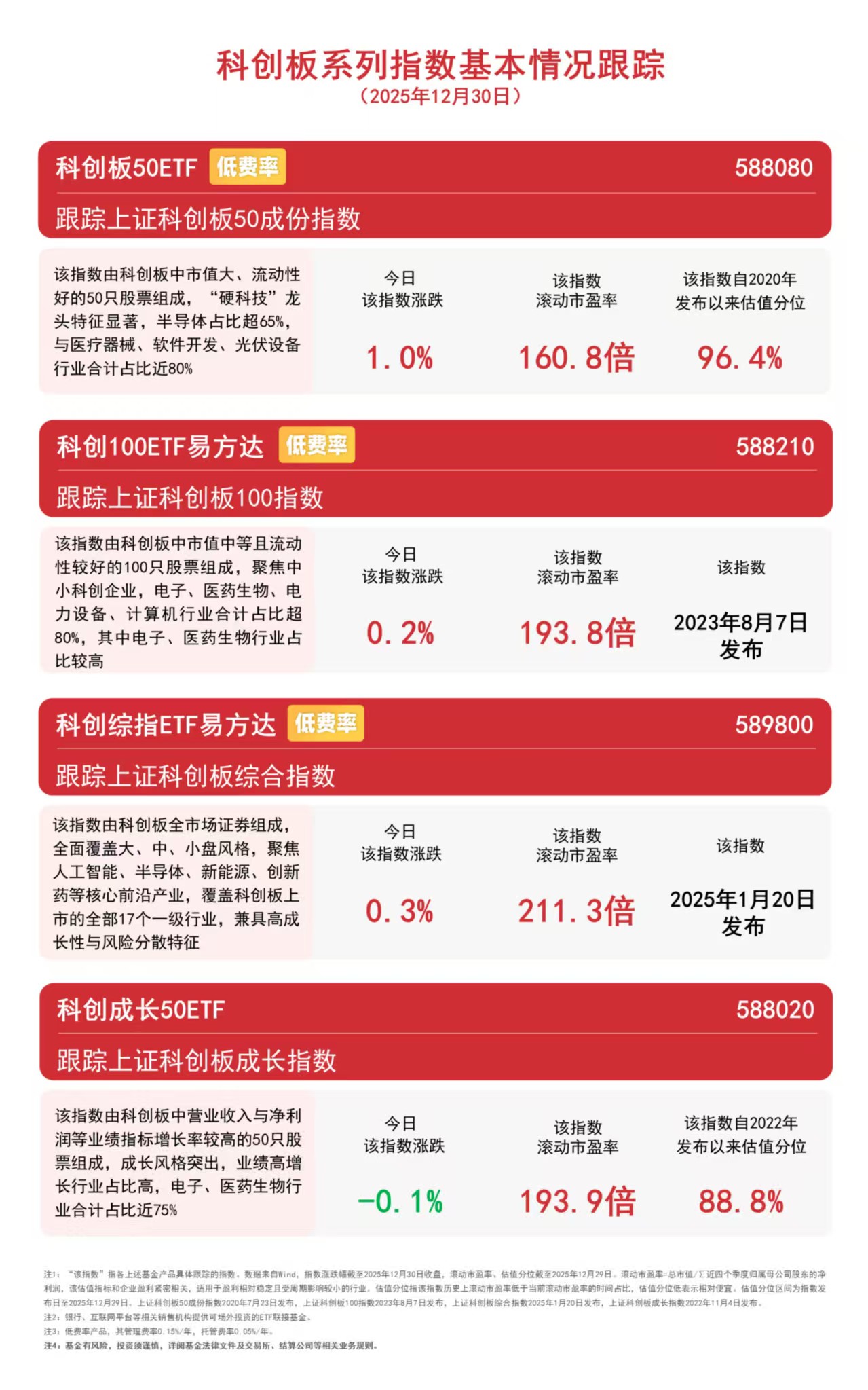 科创板50指数由科创板中市值大、流动性好的50只股票组成,半导体行业占比超65%;上证科创板人工智能指数则聚焦科创板AI产业链企业,芯片相关权重占比在同类指数中排名第一。科创板50ETF(588080)、科创人工智能ETF(588730)分别跟踪以上指数,为投资者投资科技成长板块提供了便捷配置工具。