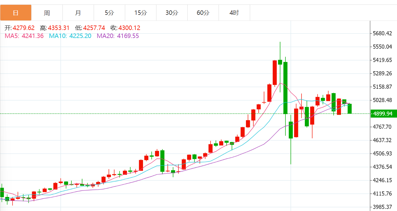 财联社2月17日电,现货黄金向下跌破4900美元,日内下跌1.88%。现货白银日内跌超4%。