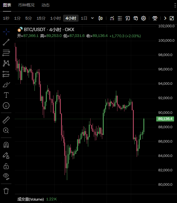 财联社12月2日电,行情显示,比特币涨至89061美元,过去24小时内涨3.3%,上一交易日大跌8%;以太坊涨至2907.12美元,过去24小时内涨3.16%。