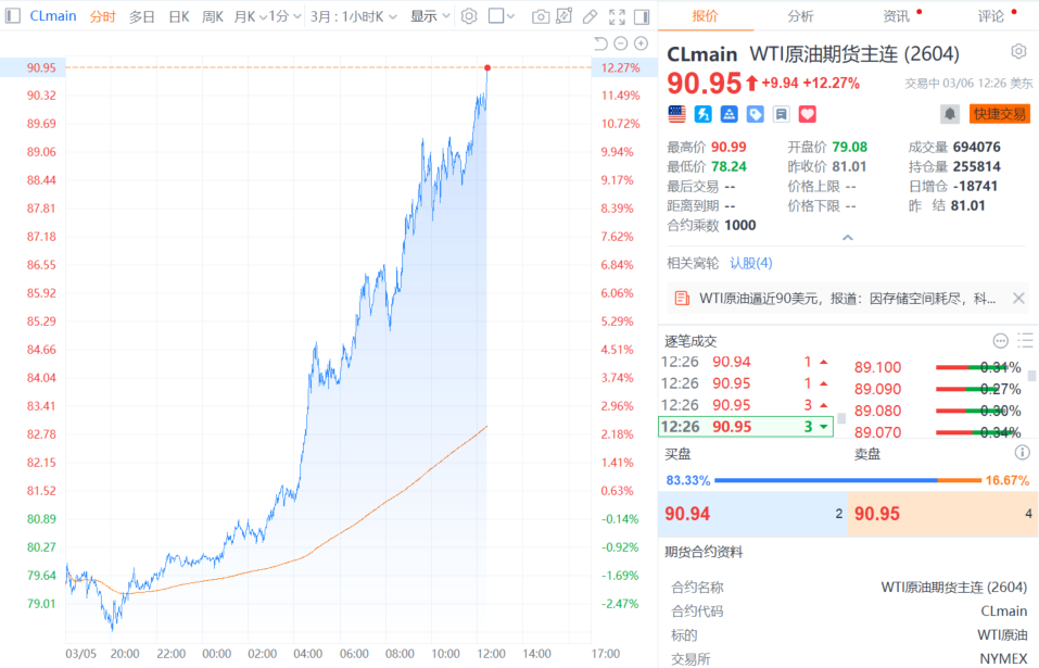财联社3月6日电,随着中东冲突不断扩大,出口商千方百计寻找绕开该地区的航线,多家炼油厂减产进一步引发全球对能源危机的恐惧。越来越多的油轮从波斯湾转向红海,沙特阿拉伯正增加延布港的原油装载量。霍尔木兹海峡交通近乎瘫痪导致该地区各地的储油罐即将满溢,无人机和导弹频频将沙特、科威特和巴林炼油厂作为袭击对象,数家炼厂不得不削减产能。不断升级的战争切断了流向亚洲和欧洲关键客户的石油和天然气供应,导致能源价格飙升。由于无法通过霍尔木兹海峡出口,伊拉克在本周早些时候被迫开始关闭其最大油田。本月已有五艘超级油轮在延布港装货,其他油轮最近也转向该地区。但是,尽管沙特可以找其他路线运输其大部分原油,中东其他生产商在储油空间耗尽前通过霍尔木兹海峡恢复出口的可能性正在越来越小。