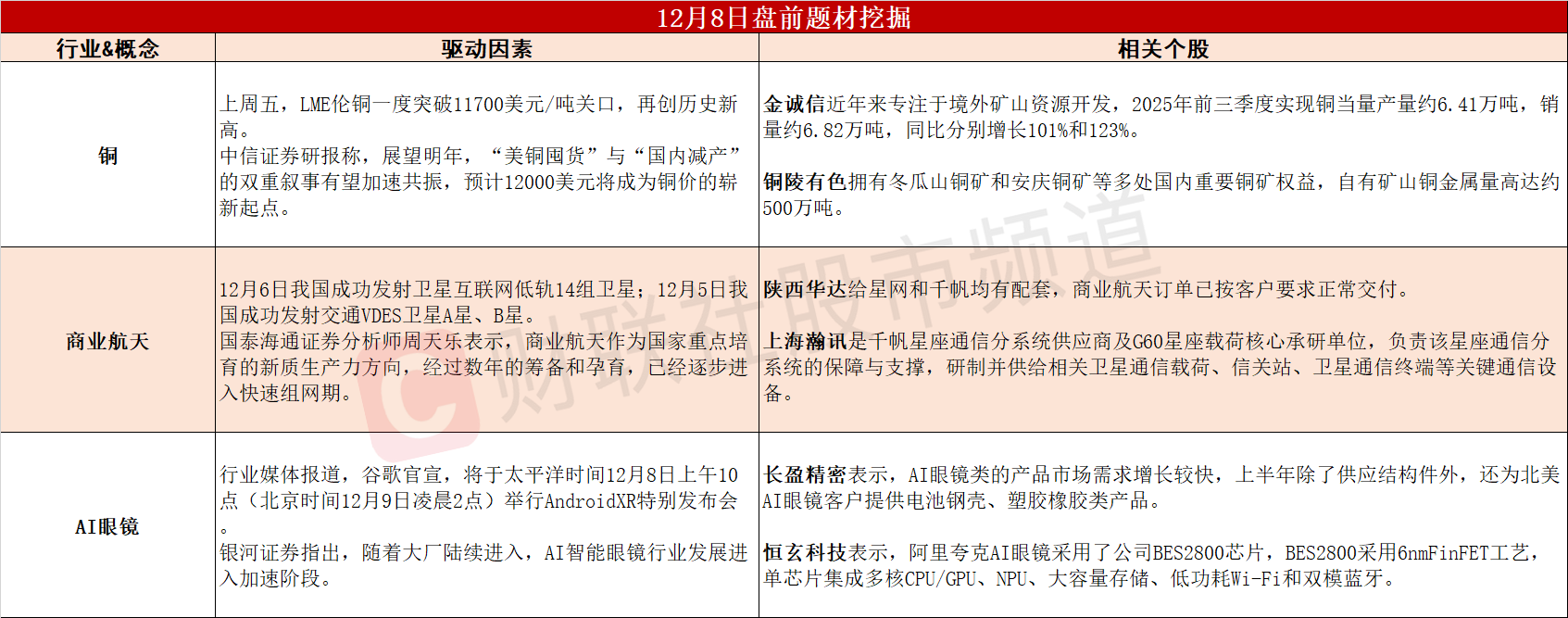 ①“美铜囤货”+“国内减产”双重共振,铜价有望加速迈向新高。②我国卫星发射数量保持快速增长,商业航天市场有望持续受益。③谷歌将举行AndroidXR特别发布会,端侧AI有望迎重磅催化。