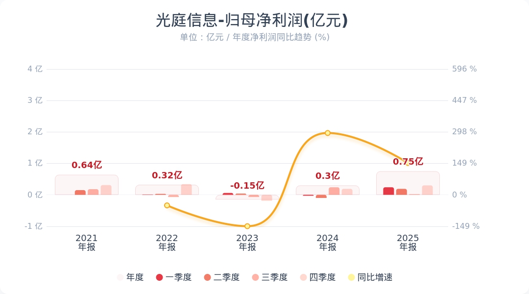 财联社4月21日电,光庭信息(301221.SZ)公告称,公司发布2025年年度报告摘要,实现营业收入6.94亿元,同比增长14.32%;归属于上市公司股东的净利润为7482.47万元,同比增长150.85%。公司拟以92,622,300股为基数,向全体股东每10股派发现金红利3元(含税),送红股0股(含税),以资本公积金向全体股东每10股转增4股。小财注:公司Q4净利润0.3亿,Q3净利润0.02亿,据此计算,Q4净利润环比增长1515%。第四季度净利润分析师一致预测是0.26亿,经计算Q4净利为0.3亿,业绩高于预期。