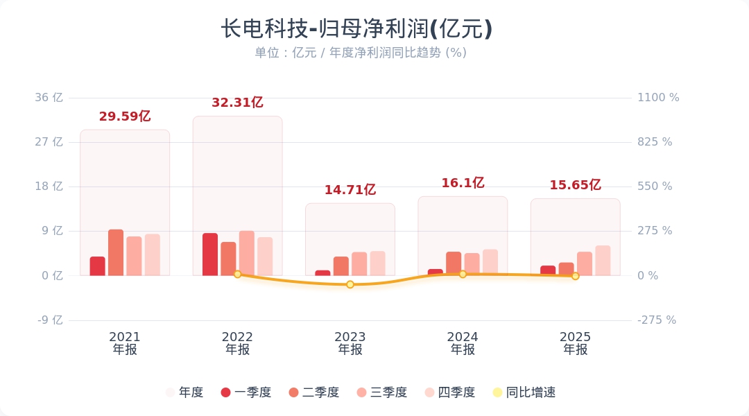 财联社4月9日电,长电科技(600584.SH)发布2025年年度报告,实现营业收入388.71亿元,同比增长8.09%;归属于上市公司股东的净利润为15.65亿元,同比下降2.75%。公司拟向全体股东每10股派发现金红利1.00元(含税)。报告期内受国内市场需求回暖及国产半导体替代等因素拉动,国内工厂销售增长,带动公司整体收入增加;与此同时,受国际大宗商品价格大幅上升影响,部分原材料成本对毛利率构成较大压力,叠加新建工厂尚处于产品导入期和产能爬坡期,未形成大规模量产收入及财务费用有所上升,短期内利润表现承压。2025年度公司光电合封(CPO)产品实现客户样品交付,玻璃基板产品研发取得积极进展,已初步验证玻璃基板在大尺寸FCBGA的应用。小财注:Q3净利润4.83亿,据此计算,Q4净利润6.11亿,环比增长26%。
