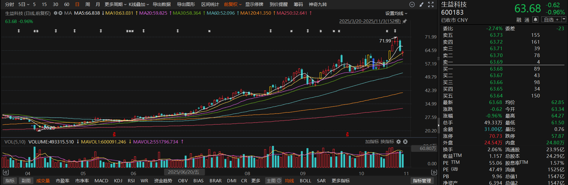 小财注:截至三季度末,广新集团位列生益科技第一大股东,直接持股5.92亿股,占公司总股本的24.38%。二级市场上,生益科技自4月9日低点迄今股价累计最大涨幅达259%。