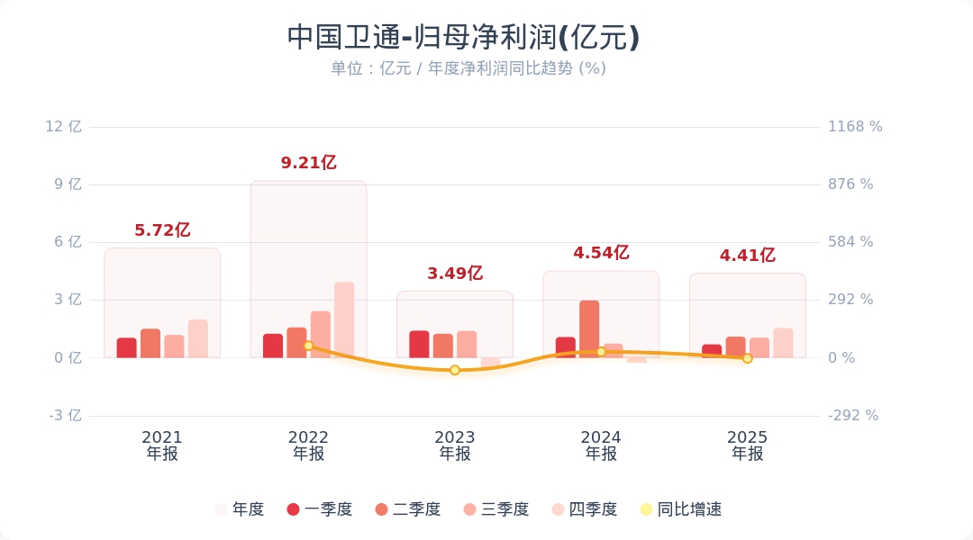 中国卫通:2025年度净利润4.41亿元 同比下降2.92%