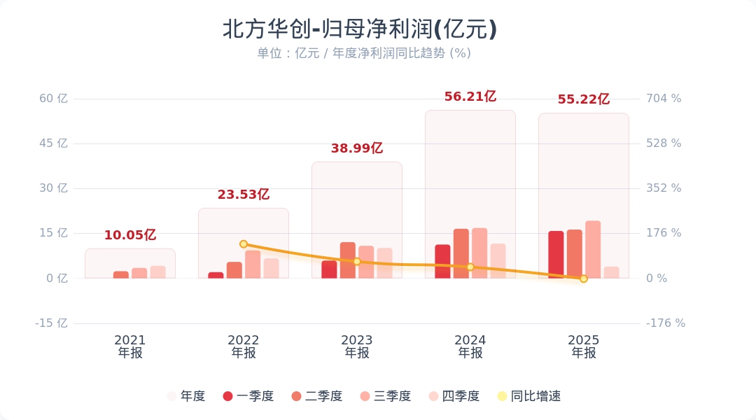 北方华创2025年净利润55亿元同比下降1.77% 研发投入大幅提升所致 计入当期损益的研发费用54亿元同比增长47%