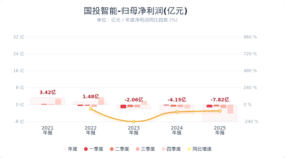 财联社4月17日电,国投智能(300188.SZ)公告称,公司发布2025年年度报告,实现营业收入14.11亿元,同比下降20.23%;归属于上市公司股东的净利润为-7.82亿元。小财注:公司Q4净利润-4.16亿,Q3净利润-1.57亿,据此计算,Q4净利润持续亏损。