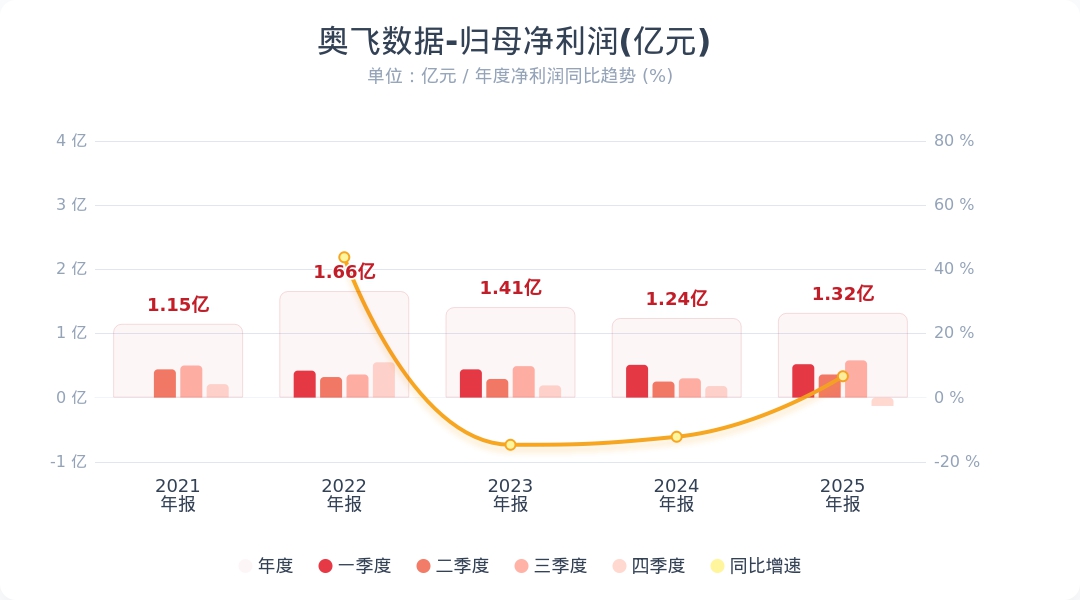 奥飞数据:2025年净利润1.32亿元 同比增长6.65%