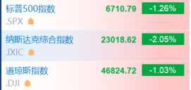 美股低开低走 三大指数均跌超1%