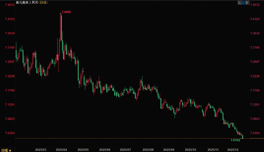 财联社12月23日电,离岸人民币兑美元午盘涨124点并升破7.02元关口。
