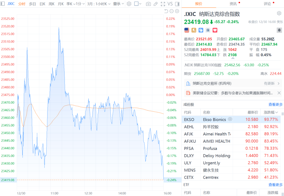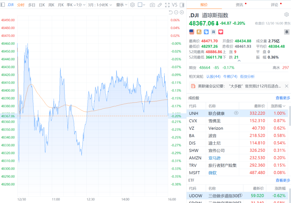 美股三大期指小幅走弱 年末获利了结情绪升温 | 今夜看点