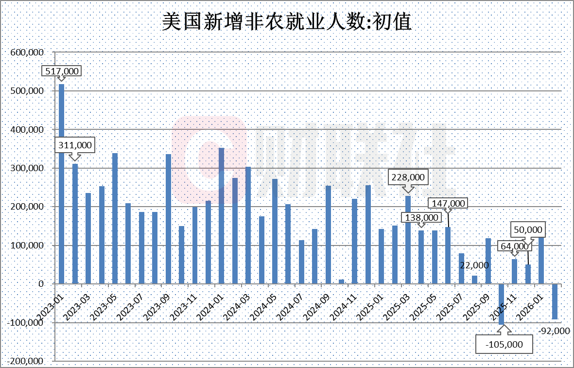财联社3月6日电,美国2月非农就业人数减少9.2万,预估为增加5.5万。美国2月私营领域就业人数减8.6万,政府部门就业人数减6000。美国1月非农就业人数修正至增12.6万,12月修正至减1.7万。