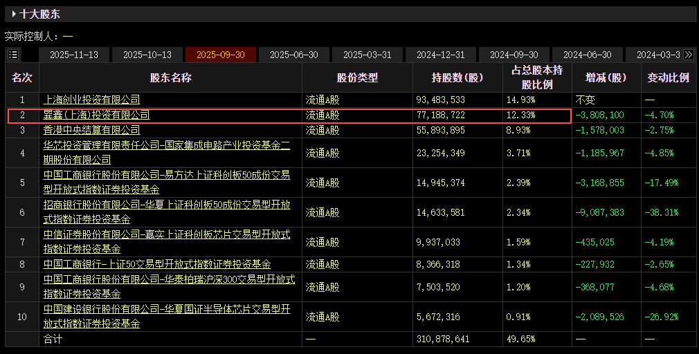 小财注:截至三季度末,巽鑫投资位列中微公司第二大股东,持有7718.87万股,占总股本的12.33%。中微公司8月27日公告,巽鑫投资计划自公告披露之日起15个交易日后的3个月内,通过大宗交易方式减持公司股票不超过总股本的2%。