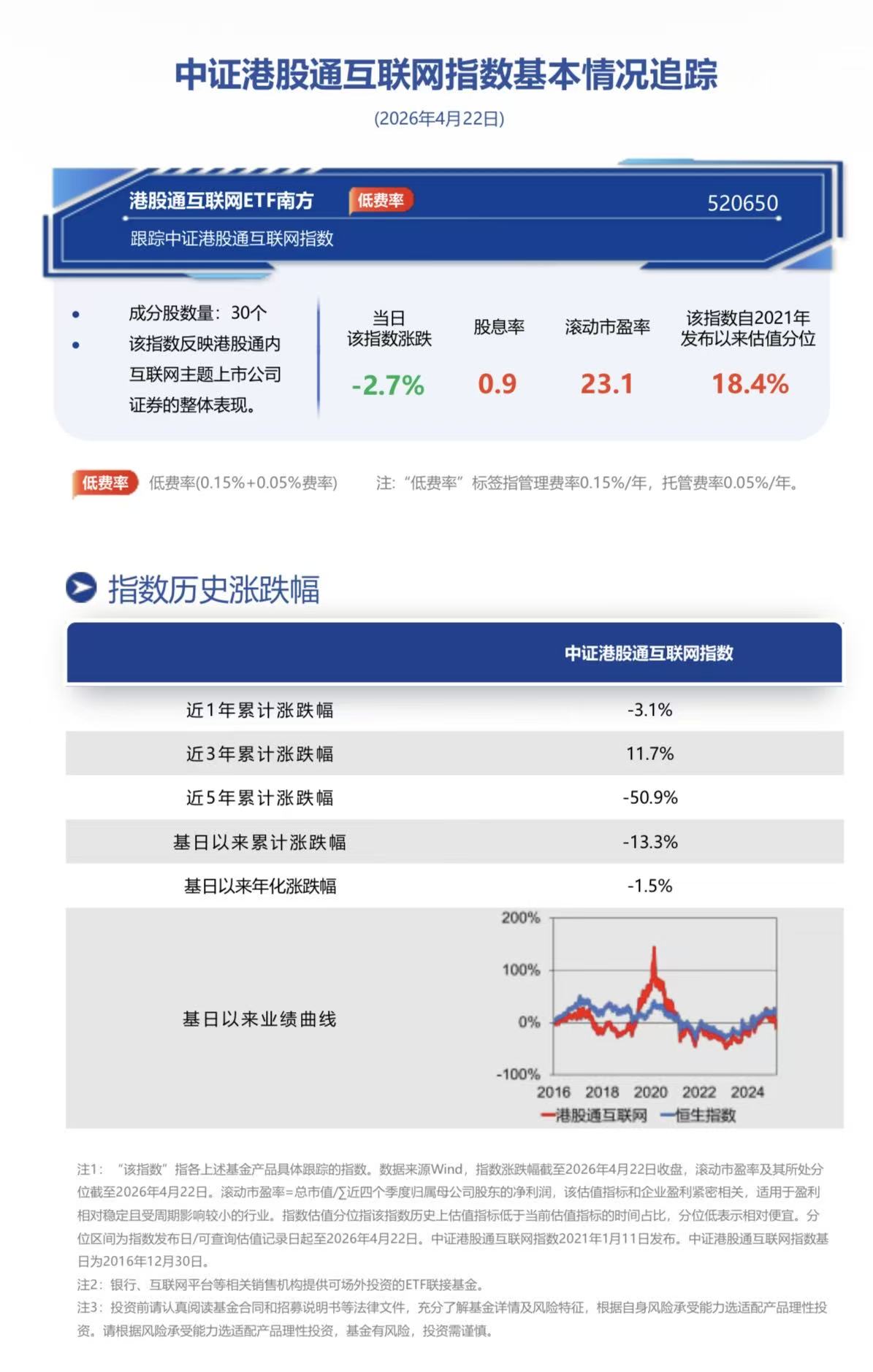 相关产品:恒生科技ETF南方(520570),场外联接基金:A类:020988;C类:020989。港股通互联网ETF南方(520650),场外联接基金:A类:026554;C类:026555。香港科技ETF南方(159747)。