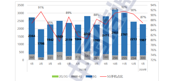 财联社3月2日电,据工信部消息,2026年春节期间,9天(2月15日0时至2月23日24时)累计移动互联网用户接入流量达878.3万TB,按可比口径较2025年春节增长18.7%,增速同比加快8.8个百分点。其中,2月21日(大年初五)移动互联网用户接入流量达到峰值99.3万TB,较2025年同期(初五)增长17.1%,比春节期间日均流量高1.7万TB。5G移动互联网用户接入流量保持快速增长,按可比口径较2025年春节增长39%,在移动互联网用户接入流量中占比71.4%。抖音、微信、快手、腾讯视频、哔哩哔哩和小红书等6款APP(手机应用程序)使用流量居前列,占全部APP使用流量的近70%。