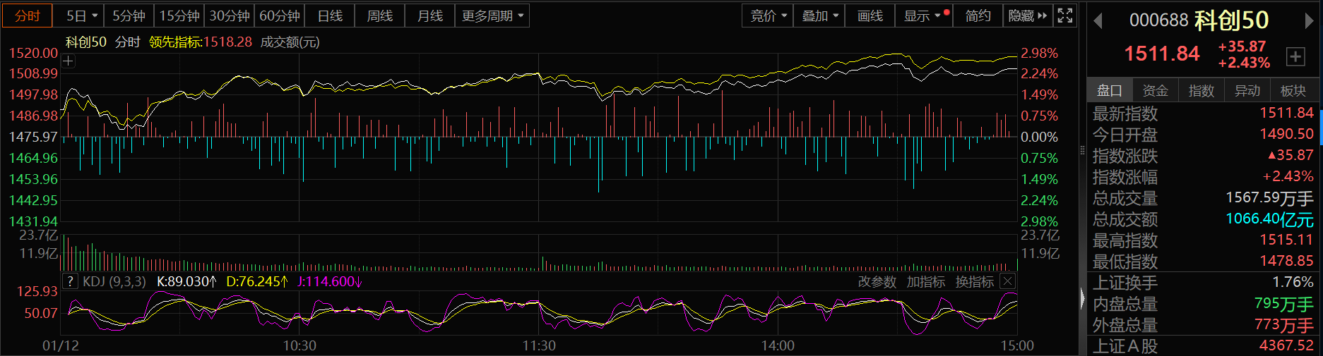 《科创板日报》12日讯,今日,科创50指数收涨2.43%,报1511.84点。盘面上,软件板块掀涨停潮,普元信息、新点软件、星环科技、海天瑞声、卓易信息、福昕软件、光云科技涨停。商业航天概念股延续强势,信科移动、铂力特、中科星图涨停,航天环宇涨近14%,国科军工、震有科技涨超12%。光伏板块上涨,奥特维、海优新材涨、天合光能超8%,高测股份涨逾6%。