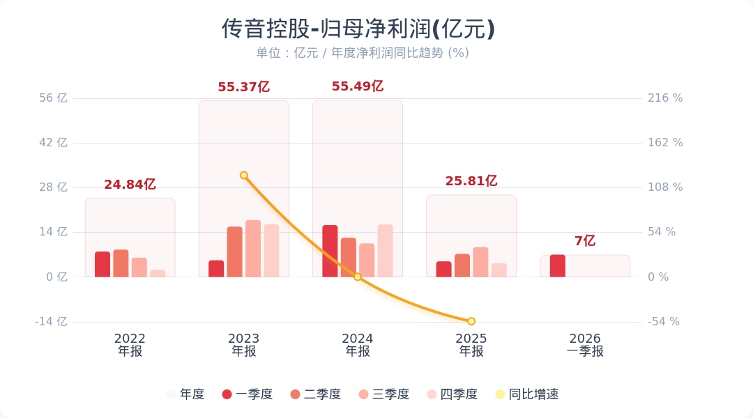传音控股业绩快报:2025年净利润25.84亿元 同比下降53.43%