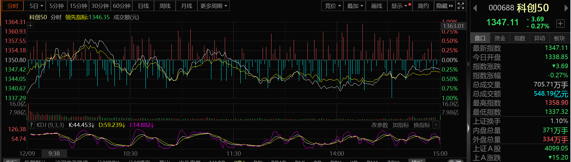 《科创板日报》20日讯,今日,科创50指数收跌1.24%,总成交额437.45亿元。盘面热点稀少,个股持续缩量。分行业来看,半导体、OCS等AI硬件方向涨幅居前,德科立涨超9%,腾景科技涨超6%,天岳先进、宏微科技涨超5%。锂电池、光伏等新能源赛道持续回调,华盛锂电跌超9%,大全能源跌超6%,天合光能跌超5%,芳源股份、派能科技等纷纷下挫。创新药板块涨跌不一,悦康药业涨超7%,前沿生物涨超5%,金迪克跌超8%,艾迪药业跌超6%。个股表现上,盐湖提锂概念股三达膜涨超13%。