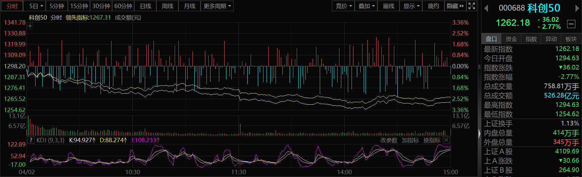 科创板收评:科创50指数收跌2.77% 创新药械板块逆势上涨