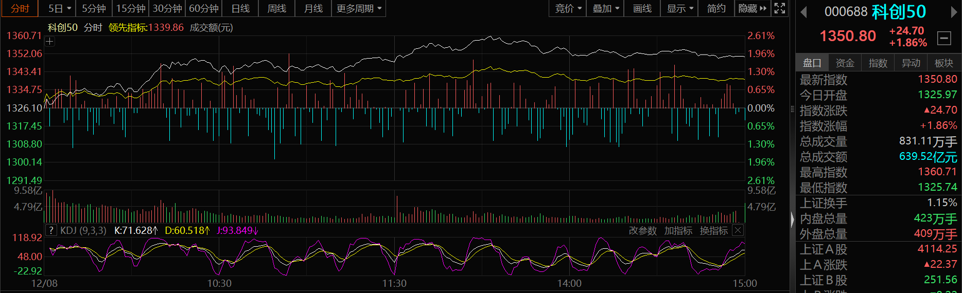 《科创板日报》20日讯,今日,科创50指数收跌1.24%,总成交额437.45亿元。盘面热点稀少,个股持续缩量。分行业来看,半导体、OCS等AI硬件方向涨幅居前,德科立涨超9%,腾景科技涨超6%,天岳先进、宏微科技涨超5%。锂电池、光伏等新能源赛道持续回调,华盛锂电跌超9%,大全能源跌超6%,天合光能跌超5%,芳源股份、派能科技等纷纷下挫。创新药板块涨跌不一,悦康药业涨超7%,前沿生物涨超5%,金迪克跌超8%,艾迪药业跌超6%。个股表现上,盐湖提锂概念股三达膜涨超13%。