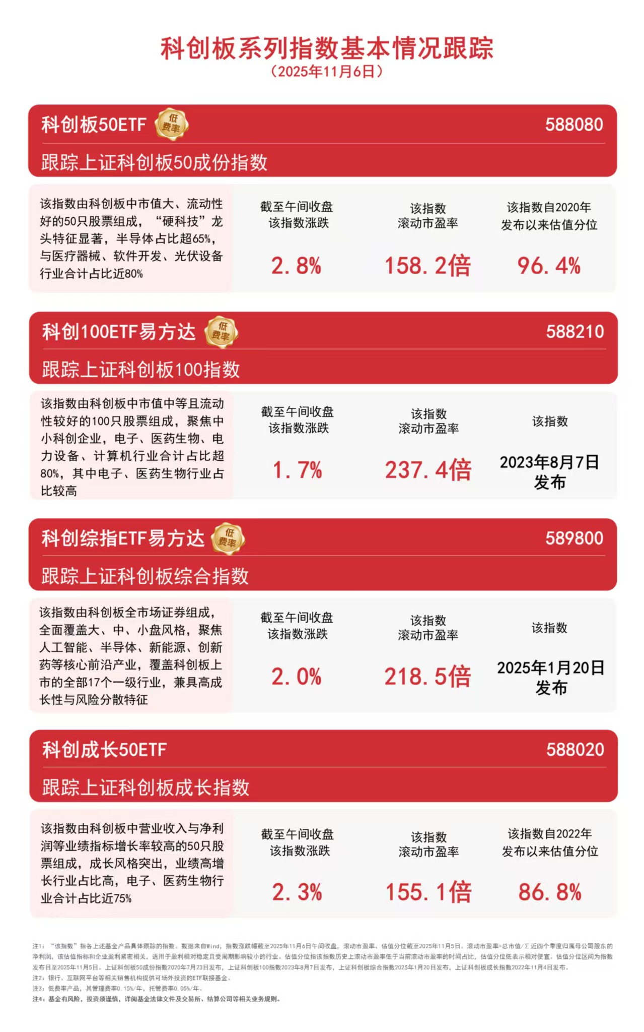 截至午间收盘,科创板50指数上涨2.8%,科创成长指数上涨2.3%,科创综指上涨2.0%,科创100指数上涨1.7%,相关产品近日受市场关注,Wind数据显示,截至昨日,科创板50ETF(588080)近5个交易日合计“吸金”超5亿元。