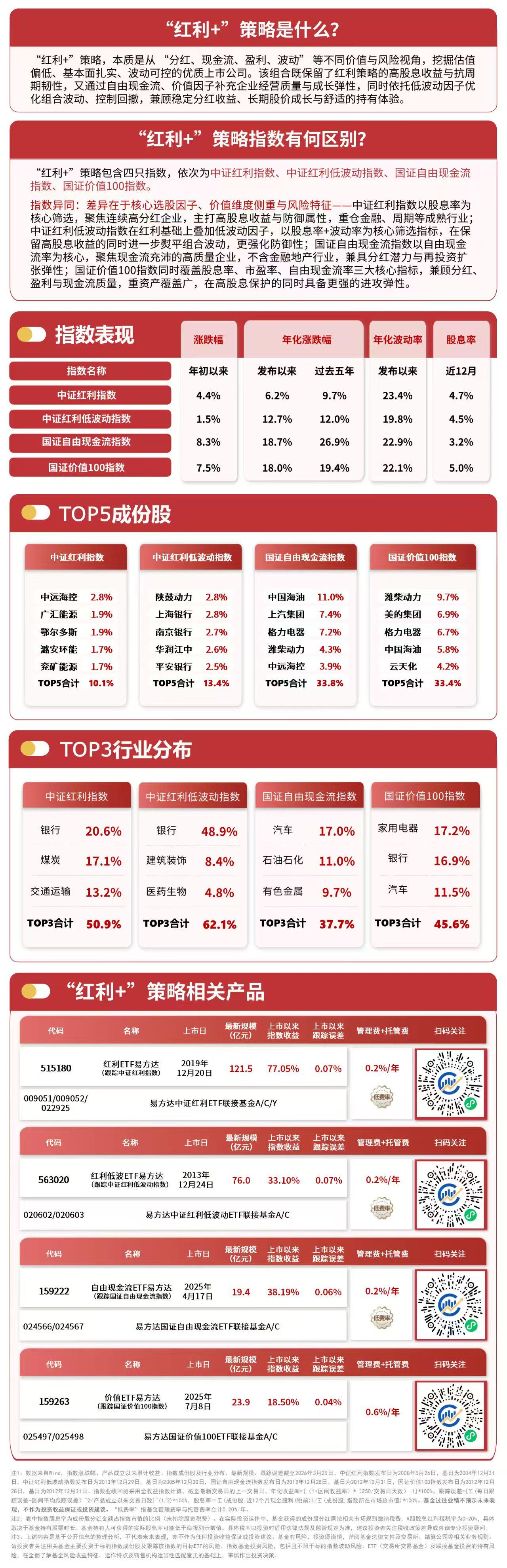 有分析认为,“红利+”策略本质是从“分红、现金流、盈利”等不同投资价值视角,挖掘估值偏低、基本面扎实的优质上市公司,既保留了红利策略的高股息收益与抗周期韧性,又通过自由现金流、价值因子补充了企业经营质量与成长弹性,兼顾稳定分红收益与长期股价成长,适合追求稳健收益、注重风险控制的长期投资者。
