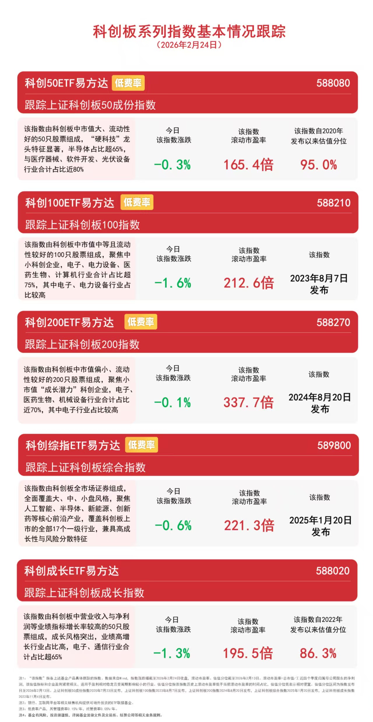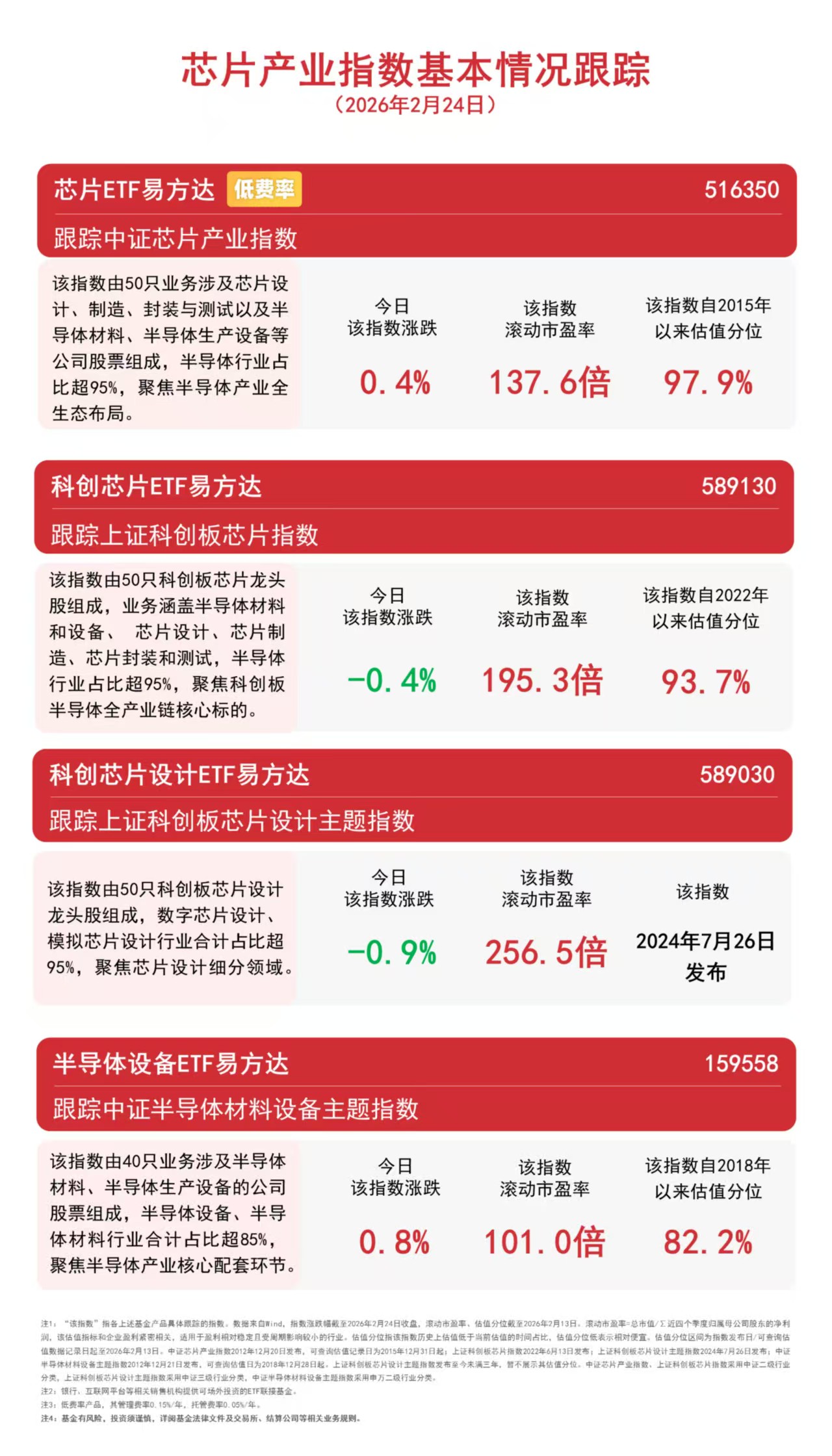 2月24日,AI产业链方向震荡分化,集成电路、CPO板块活跃,云计算板块回调。截至收盘,中证人工智能主题指数上涨0.2%,中证科创创业人工智能指数下跌0.4%,上证科创板人工智能指数下跌2.8%,人工智能ETF易方达(159819)全天净申购超7000万份。