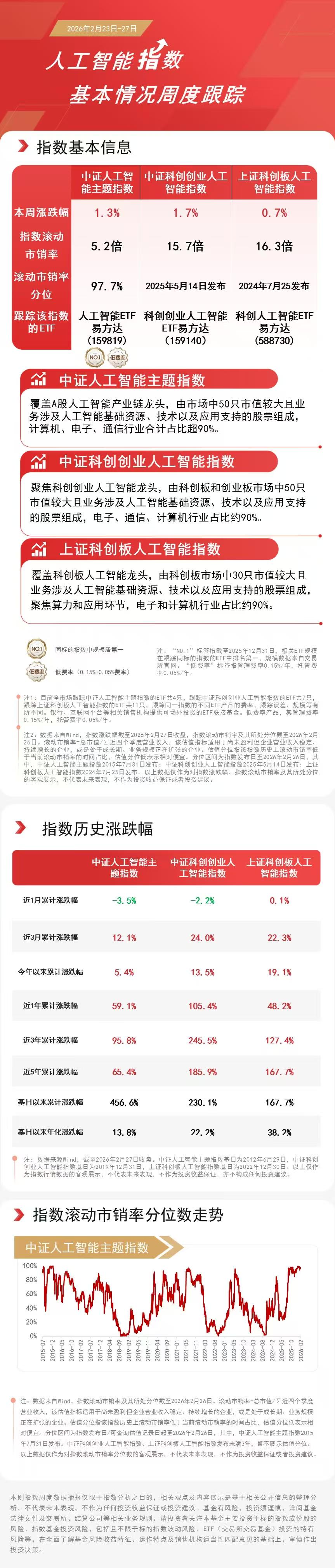 节后归来第一周,HBM、电路板、覆铜板等AI硬件方向表现活跃。指数层面,中证科创创业人工智能指数上涨1.7%,中证人工智能主题指数上涨1.3%,上证科创板人工智能指数上涨0.7%。相关ETF中,人工智能ETF易方达(159819)本周前三个交易日合计“吸金”超1亿元。