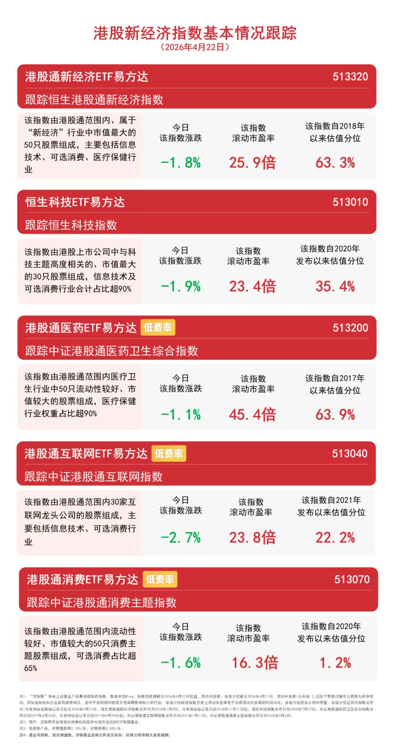 4月21日,创新药赛道短线承压,截至收盘,恒生港股通创新药指数下跌0.9%,中证创新药产业指数下跌1.2%。Wind数据显示,港股通创新药ETF易方达(159316,联接基金A/C:024328/024329)和创新药ETF易方达(516080,联接基金A/C:019666/019667)近5个交易日分别获3.2亿元和1.3亿元资金净流入。