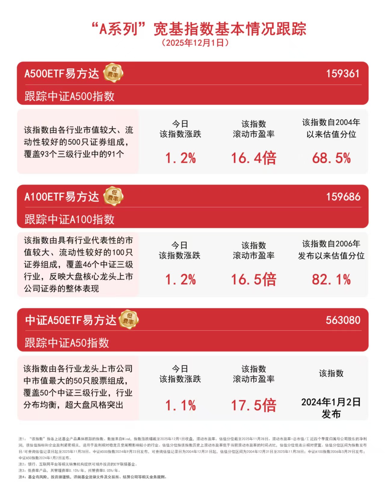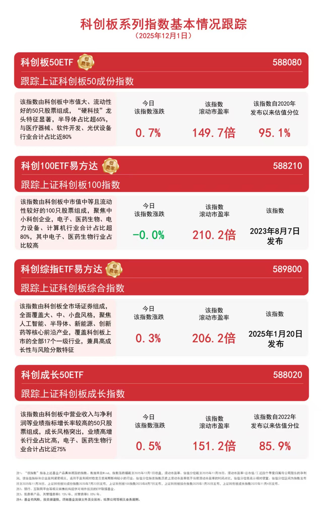 近日,中证指数有限公司宣布将调整沪深300、中证A500等指数样本,将于12月12日收市后正式生效。沪深300指数本次将更换11只样本,调整后信息技术、通信服务行业样本数量分别增加4只、2只,权重分别上升1.46%、0.75%,科技创新属性进一步增强;中证A500指数本次将更换20只样本,调整后新兴行业样本权重较调整前权重上升0.79%,新质生产力含量进一步提升,有助于指数发挥服务国家战略、引导资源配置的作用。此外,创业板指数和科创板50指数也将分别更换8只、2只样本。