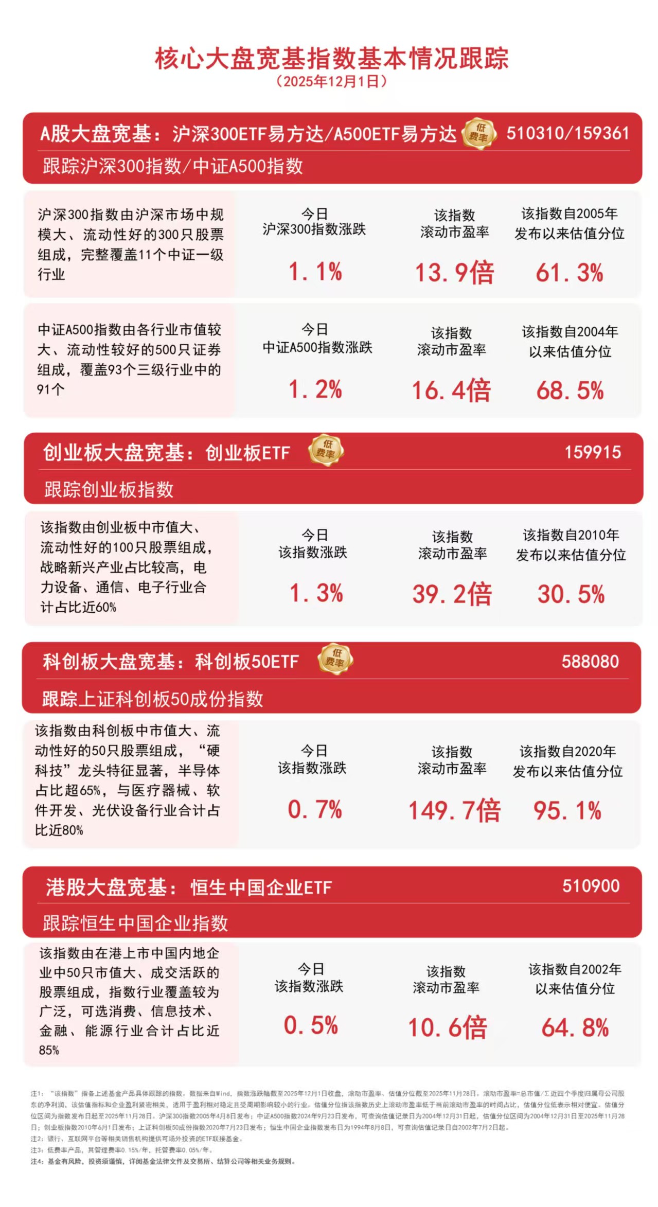 截至收盘,中证A500指数上涨1.2%,沪深300指数上涨1.1%,创业板指数上涨1.3%,上证科创板50成份指数上涨0.7%,恒生中国企业指数上涨0.5%。