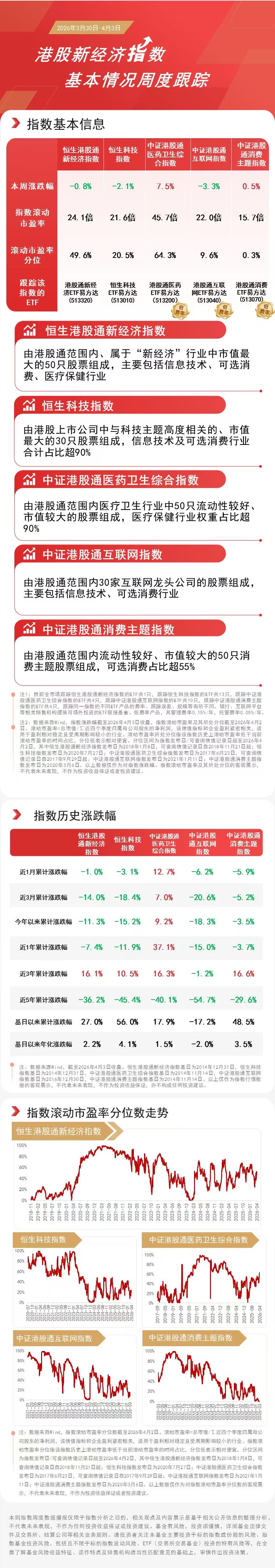 本周,港股表现分化,大型科网股领跌,医药股逆势上涨,指数层面,中证港股通医药卫生综合指数上涨7.5%,中证港股通消费主题指数上涨0.5%,恒生港股通新经济指数下跌0.8%,恒生科技指数下跌2.1%,中证港股通互联网指数下跌3.3%。Wind数据显示,恒生科技ETF易方达(513010,联接基金A/C:013308/013309)本周前四个交易日合计“吸金”约6亿元。