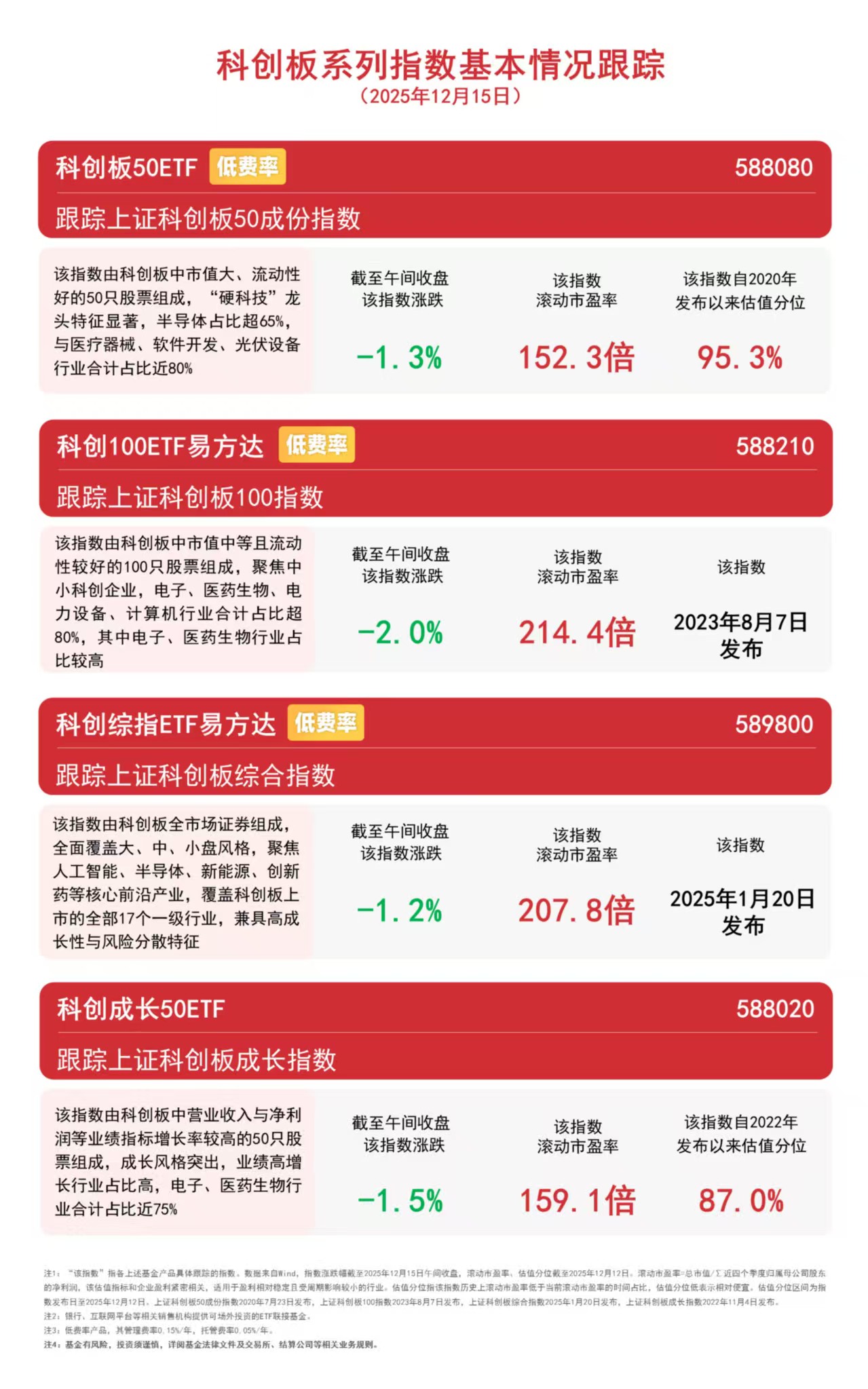 截至午间收盘,科创综指下跌1.2%,科创板50指数下跌1.3%,科创成长指数下跌1.5%,科创100指数下跌2.0%。相关产品获资金持续布局,Wind数据显示,科创板50ETF(588080)上周“吸金”约10亿元。