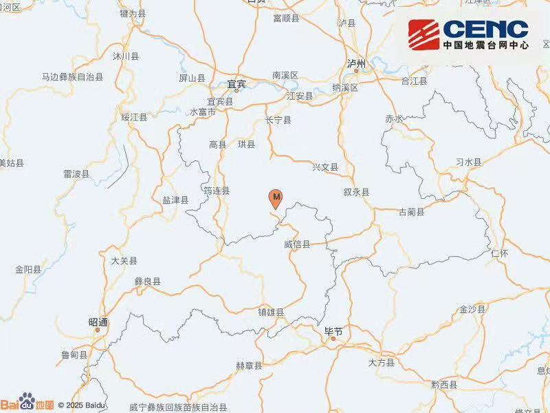 四川宜宾市珙县发生3.4级地震 震源深度8公里
