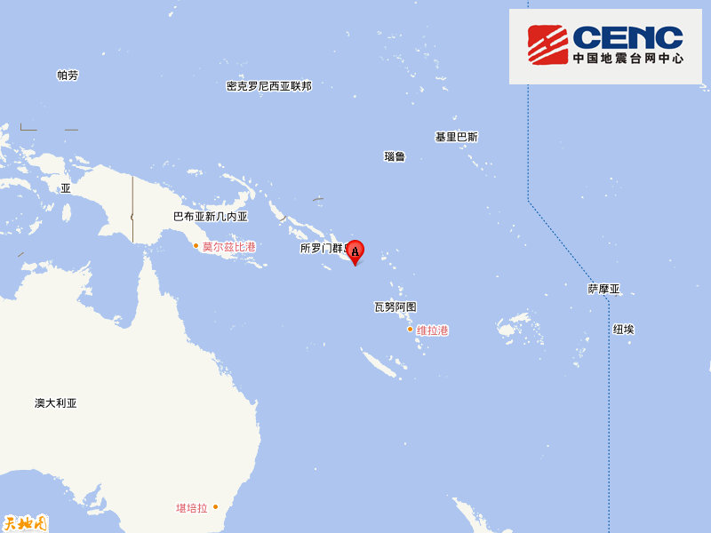 正式测定:所罗门群岛发生6.3级地震 震源深度10千米