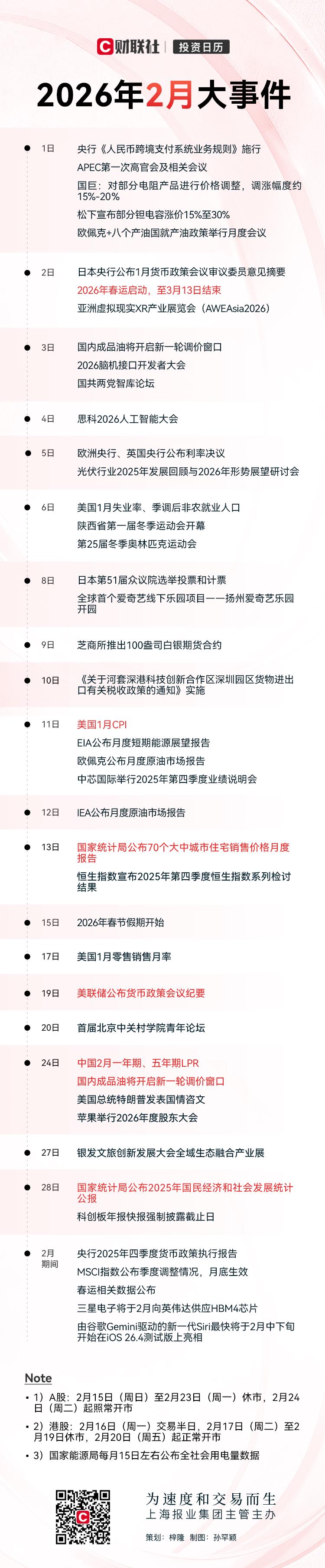 投资日历:2月资本市场大事提醒