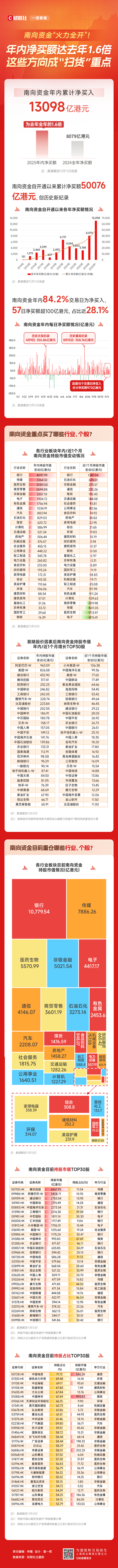 一图看懂南向资金:累计净买额历史性突破5万亿!年内加仓规模已达去年1.6倍